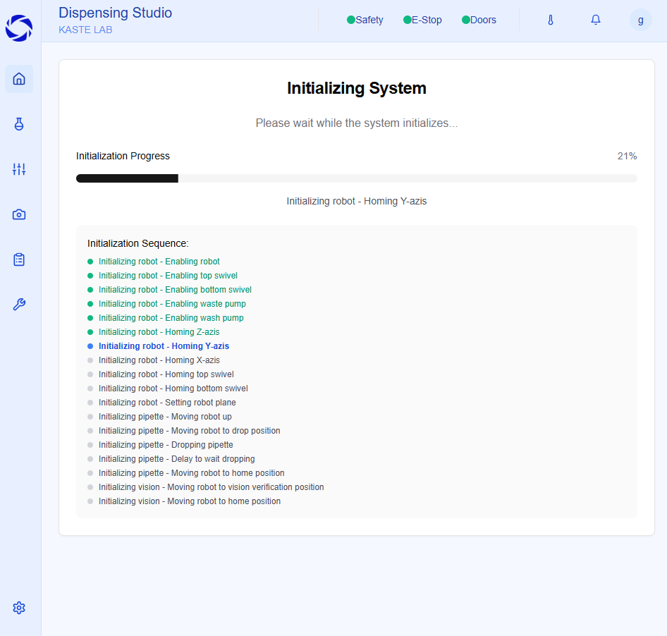 Kaste Dispensing Studio is an application-level control and recipe management software for Kaste Lab, connecting directly and providing a unified interface to configure, execute, and monitor dispensing operations from lab development all the way to automated production cells.